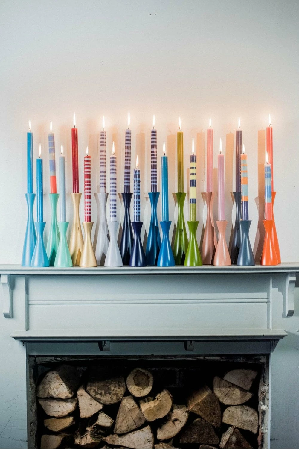 Large: 25cm x 6.6cm Small: 15cm x 6cm Wipe clean The Gull Grey Candle Holder is a striking piece that will sit beautifully in a contemporary style home. This chic candleholder has been hand crafted from wood and painted a cool grey. Available in small and large, each candleholder has a pad on the base to stop marking your surface, mix and match the sizes for a minimalistic table setting. Candle holder Gull Grey Wood Pad on candlestick base Metal cup to fit dinner or taper candles Handmade in India 34898