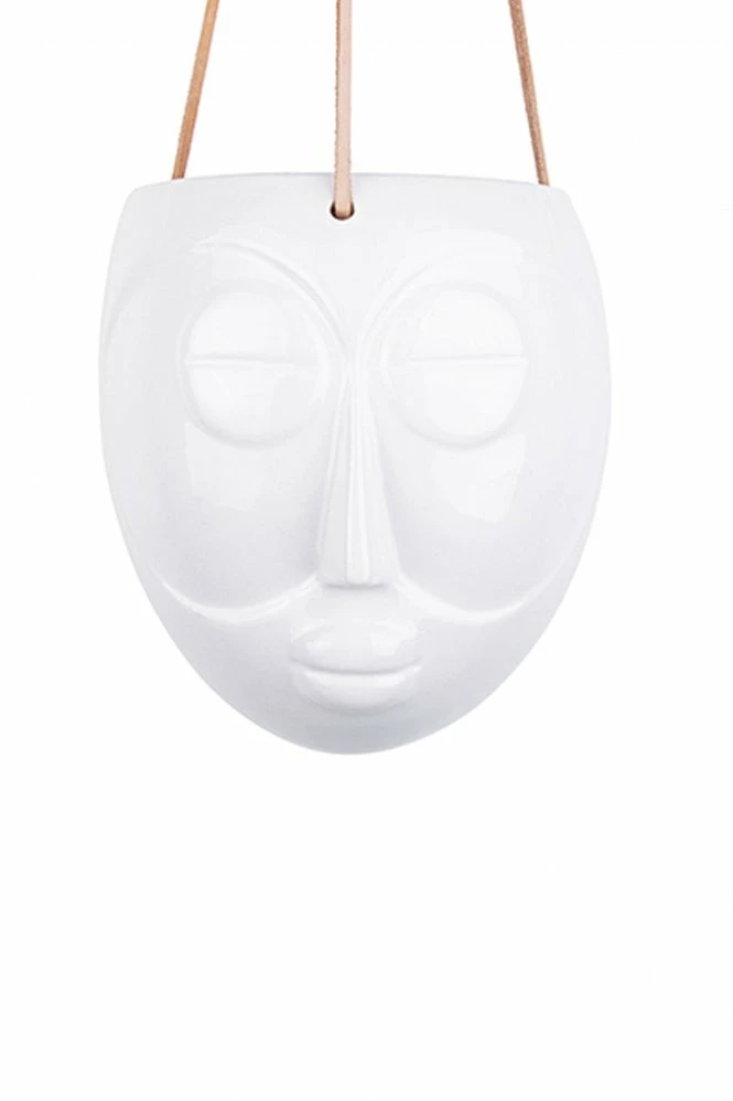 Hanging plant pot White Mask White porcelain 66cm Leather cord 16,5 x 13,6 x 17,9cm 39612