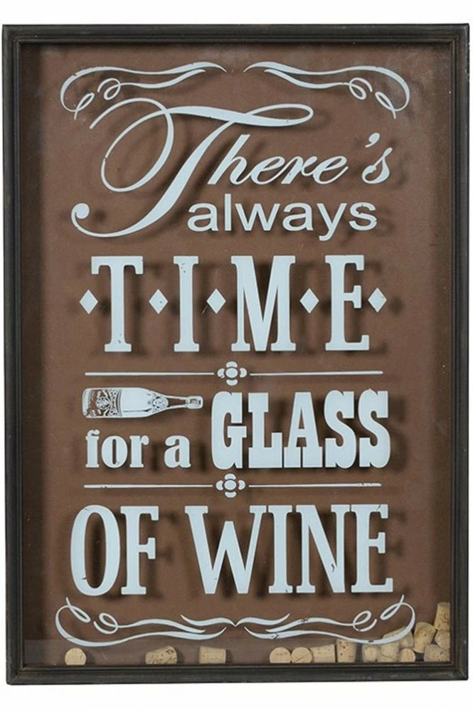 Time for wine Wall hanging Sign Corks not included Dimensions: H650 x W460 x D80 mm STN1103 19422 A quirky hanging sign is an essential part of the home, and we at Sue Parkinson have found the perfect pick – the Time For Wine Wall Hanging Sign. Taking inspiration from old school cafe signage, this fabulous piece boasts a distressed skinny frame, which incorporates a glass central pane. Written on the glass pane you will discover the slogan ‘There’s always time for a glass of wine’, which uses a fabulous combination of fun and exciting fonts. Great for hanging in any room of the home, we believe the Time For Win Wall Hanging Sign works especially well in the kitchen, living area or dining room.